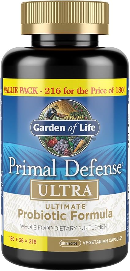 Garden of Life’s Primal Defense Ultra offers a whole food probiotic formula designed to support gut health naturally. With 216 vegetarian capsules, it provides a long-lasting supply of digestive support.