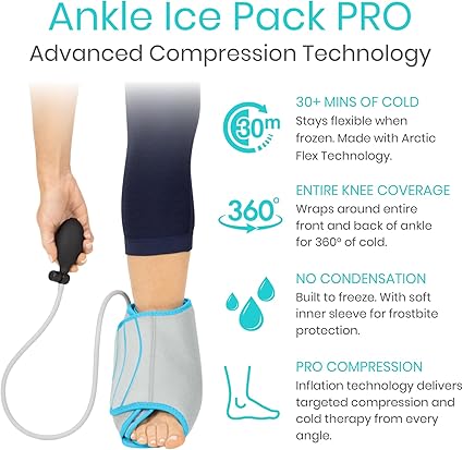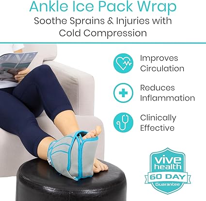 Vive’s Ankle Ice Pack Wrap offers dual benefits of compression and cold therapy, ideal for reducing pain and swelling from ankle injuries.