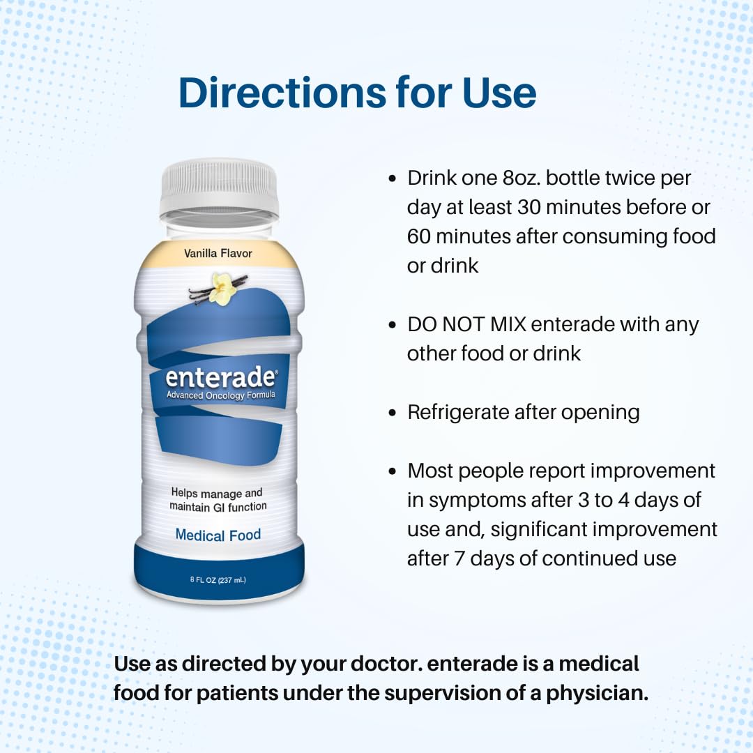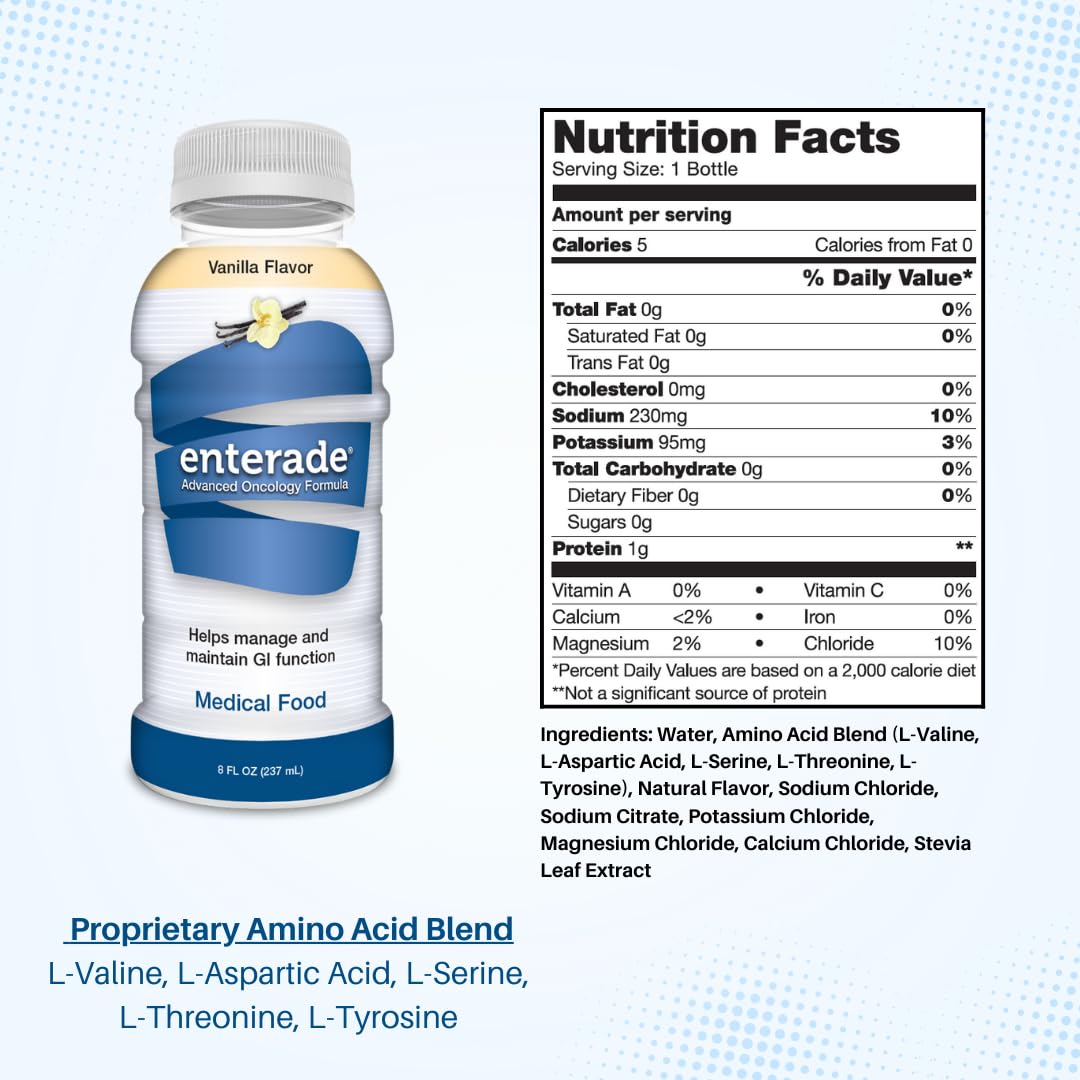 enterade AO is a scientifically-formulated drink that helps restore GI function by replenishing essential amino acids and nutrients lost during treatment.