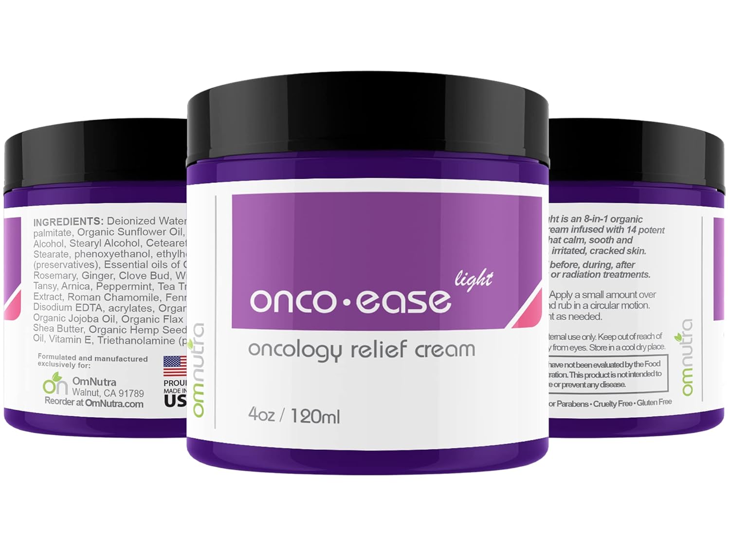 The OncoEase Light Oncology Cream offers comprehensive skin care by moisturizing dry and damaged skin while using arnica to minimize inflammation. Its lightweight formula absorbs quickly, making it perfect for face and body use.