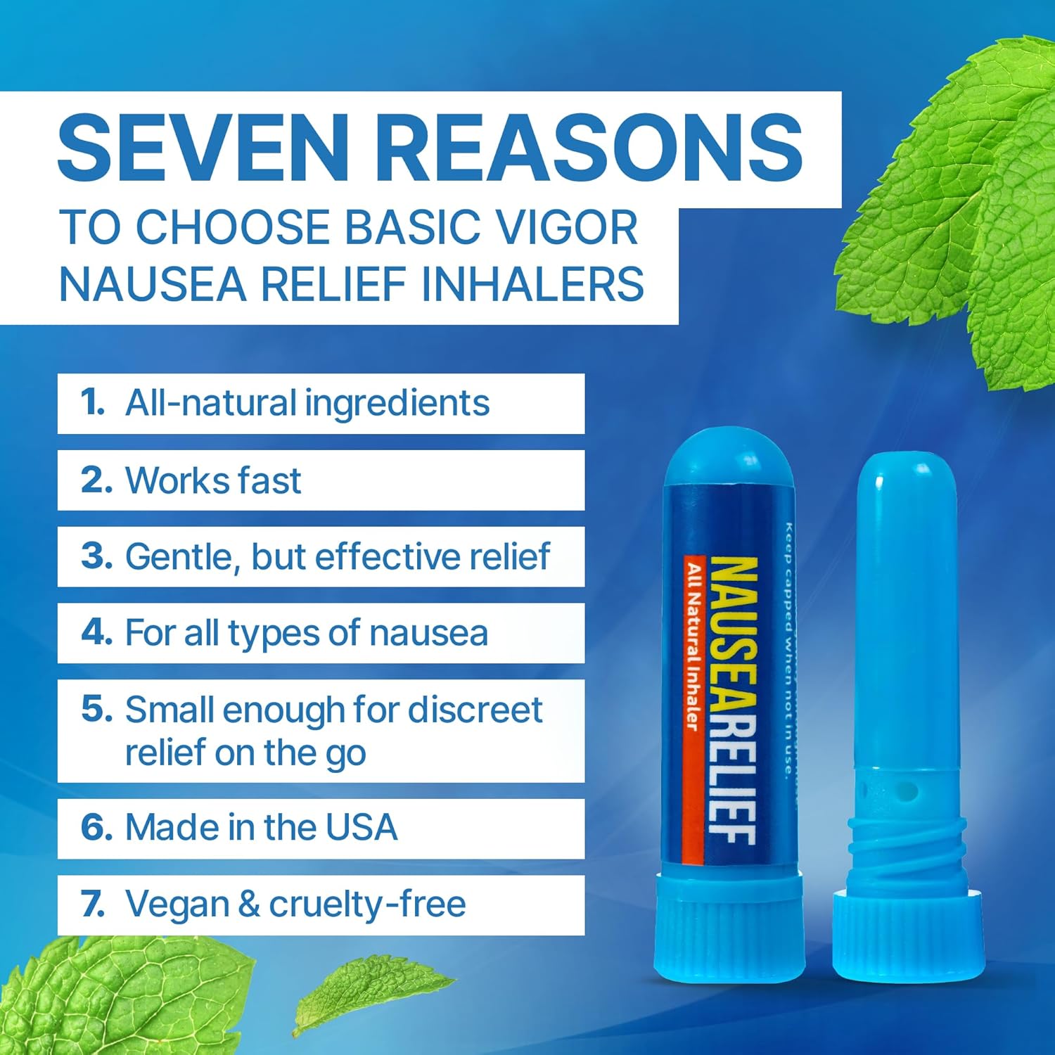 With its simple and fast application, Basic Vigor Nausea Inhaler offers a holistic approach to managing nausea, using essential oils like peppermint and ginger.
