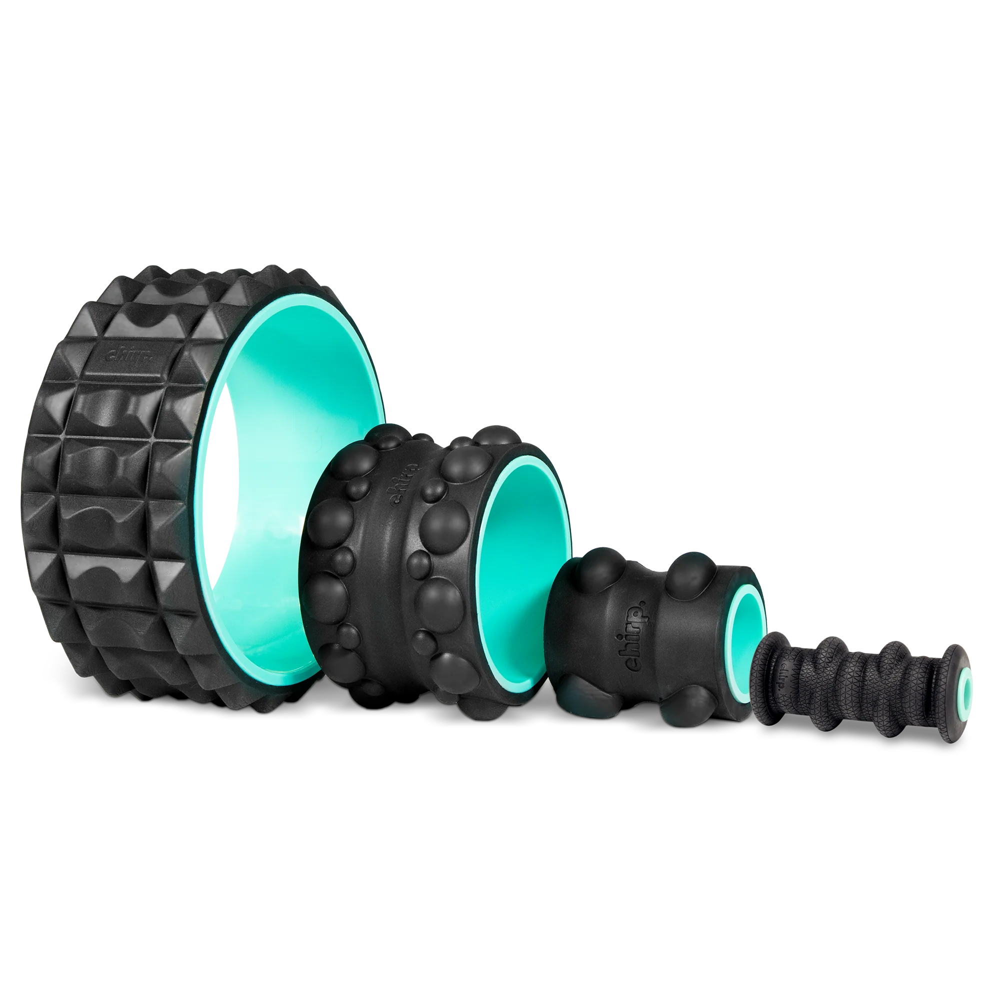 The Chirp Wheel+ (4-Pack) is a set of spine-aligned myofascial release wheels designed to support back mobility, muscle tension relief, posture ease, and everyday movement wellness. With four graduated sizes, this set allows users to target upper, mid, and lower back, as well as neck and legs, helping ease tightness, improve circulation, and encourage comfort through simple rolling techniques that fit into daily routines.