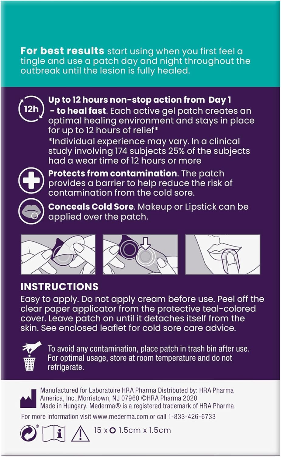 Mederma Discreet Cold Sore Healing Patches offer a convenient solution for protecting and healing cold sores. The twin pack includes 30 patches that not only conceal the sores but also create an optimal healing environment.