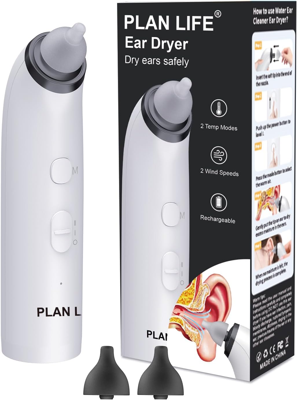 PLAN LIFE Ear Dryer offers a quick and efficient way to dry your ears with its gentle warm air. Rechargeable and easy to use, it’s a great tool for anyone active in water sports or simply looking to maintain ear health.