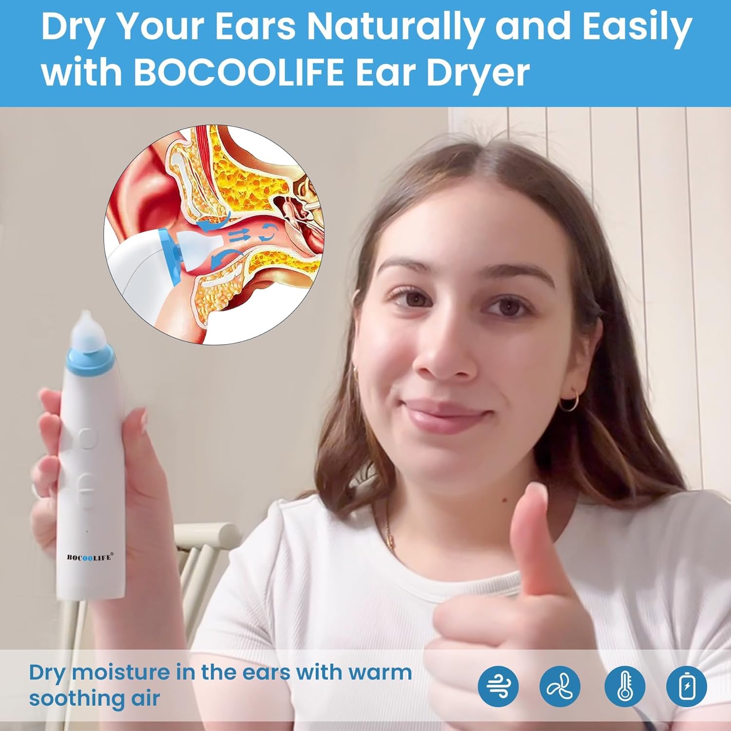 The BOCOOLIFE Ear dryers for ear pain relief, is designed for maximum efficiency in removing moisture from the ear. With seven ear tips and electronic warm air, it caters to different needs and ensures your ears remain dry and healthy.