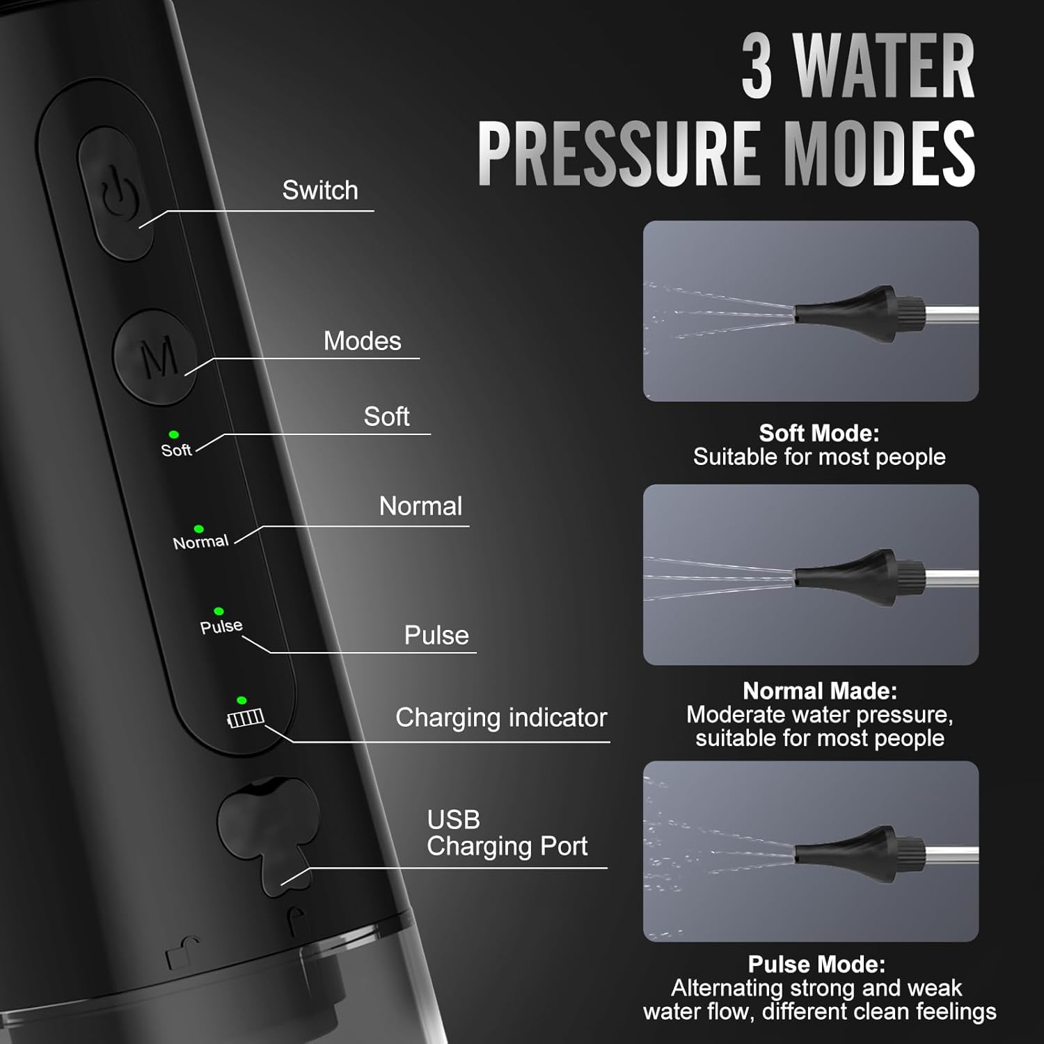 – Multiple water pressure settings