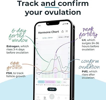 The Mira Fertility Starter Kit tracks E3G, LH, and progesterone levels to predict and confirm ovulation. The included app provides a comprehensive overview of your fertility, making it a powerful tool for those seeking detailed hormonal insights.