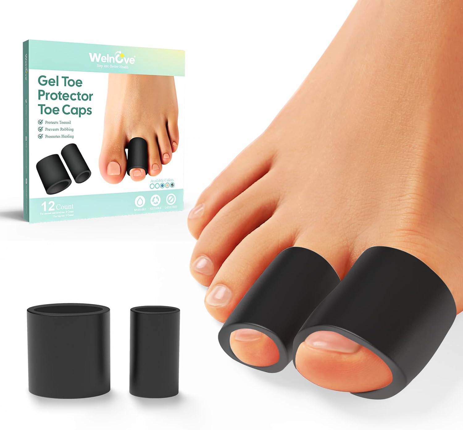 Welnove Toe Protectors offer a soft gel cushion to protect your toes from friction and pressure, ideal for reducing pain from corns and calluses.