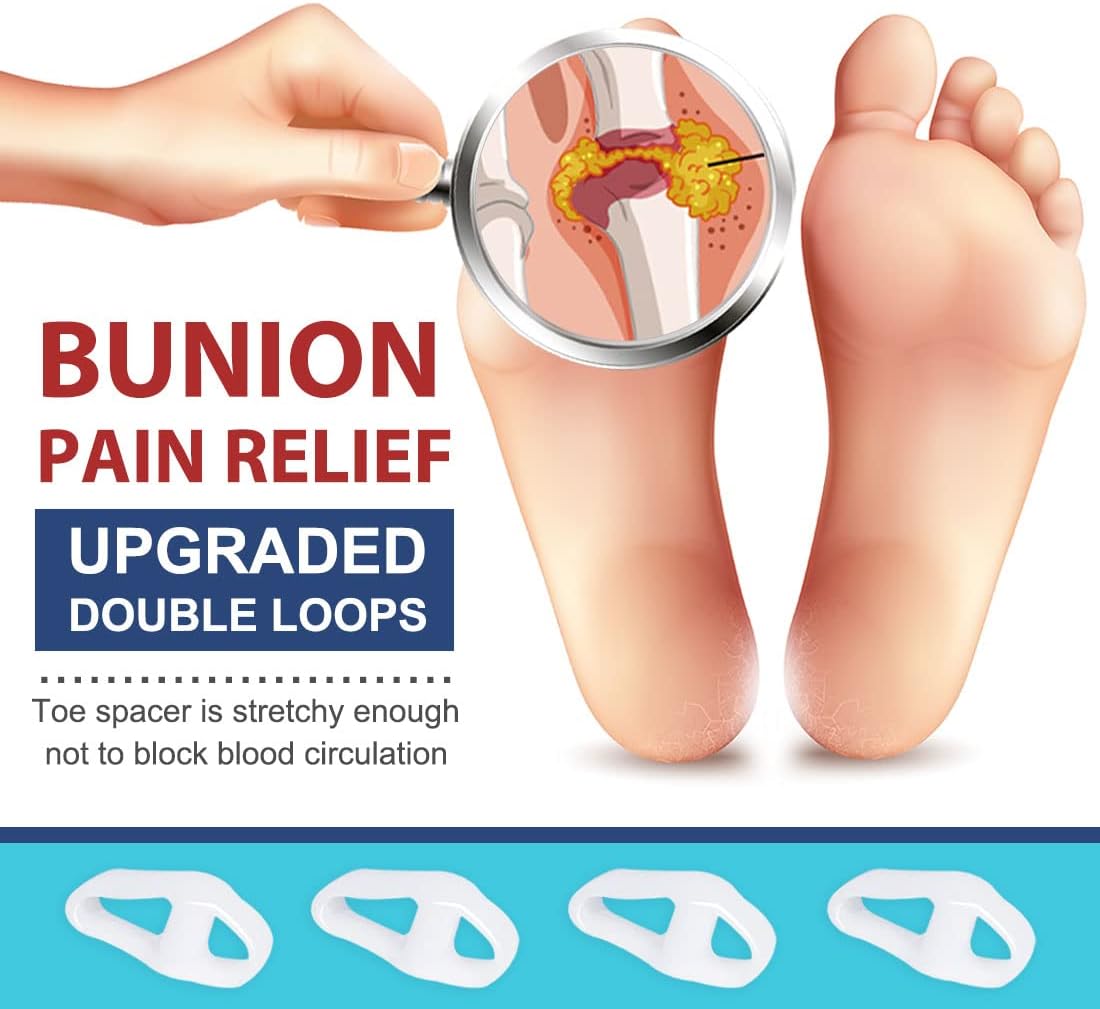 ZenToes Toe Spacers help realign your big toes, reducing pain and discomfort associated with bunions. The double-loop design ensures they stay in place, offering reliable Foot Pain Relief.