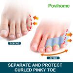 Povihome Pinky Toe Separators offer soft, flexible cushioning and separation for pinky toes, reducing discomfort and improving alignment.