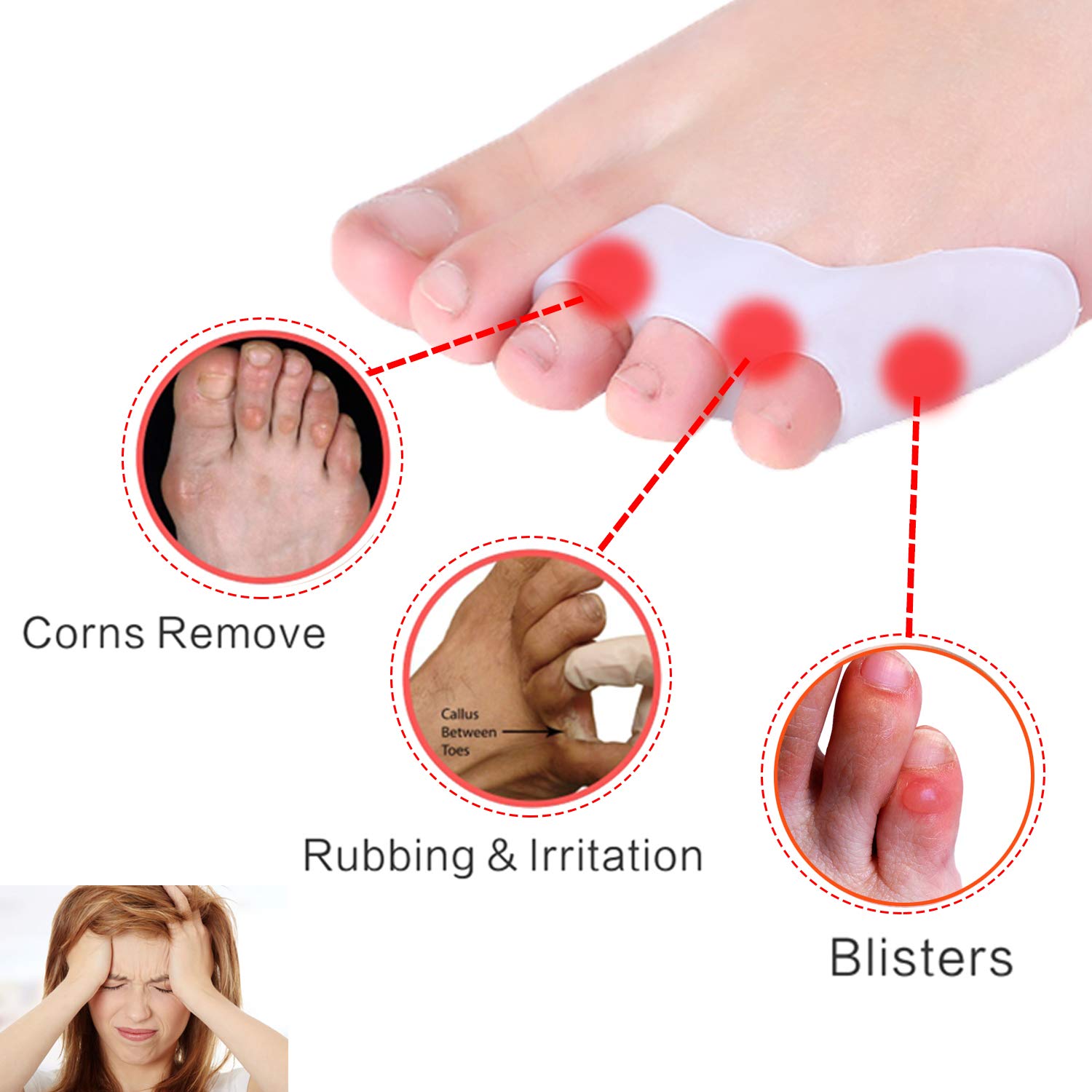 Pnrskter Pinky Toe Separators provide soft gel protection for your pinky toes, reducing pain and discomfort from bunions and friction.