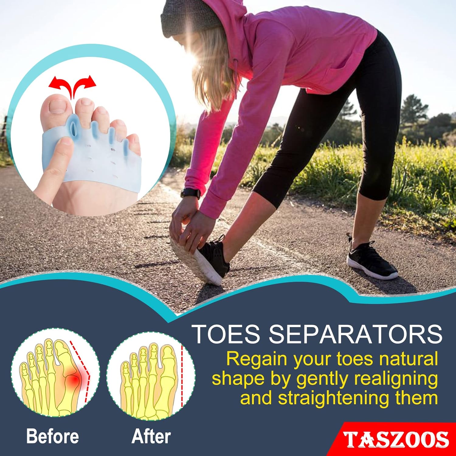 TASZOOS Toe Spacers offer comfortable gel separation and alignment for larger toes, providing relief from bunions and improving overall toe positioning.