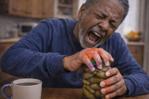 Rheumatoid Arthritis (RA) is a chronic autoimmune condition where the immune system attacks the joints, causing pain, swelling, stiffness, warmth, and reduced mobility. It often affects the hands, wrists, knees, and other joints symmetrically. Flares can come and go, and the condition may also cause fatigue, weakness, and whole-body inflammation, making daily tasks challenging.