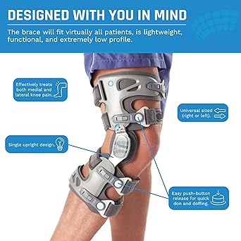 This brace effectively unloads pressure from the knee joint, providing significant pain relief and support for those with chronic knee conditions.