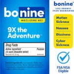 Bonine offers a portable, non-drowsy solution for motion sickness, whether you’re on a cruise or a road trip. The raspberry flavor makes it easy to take.
