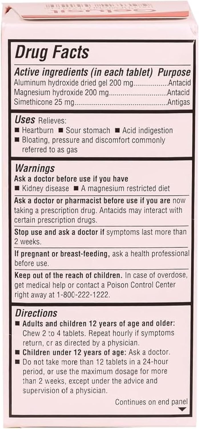 - Dual Action Formula: Provides both antacid and anti-gas relief to soothe heartburn, indigestion, and gas discomfort.