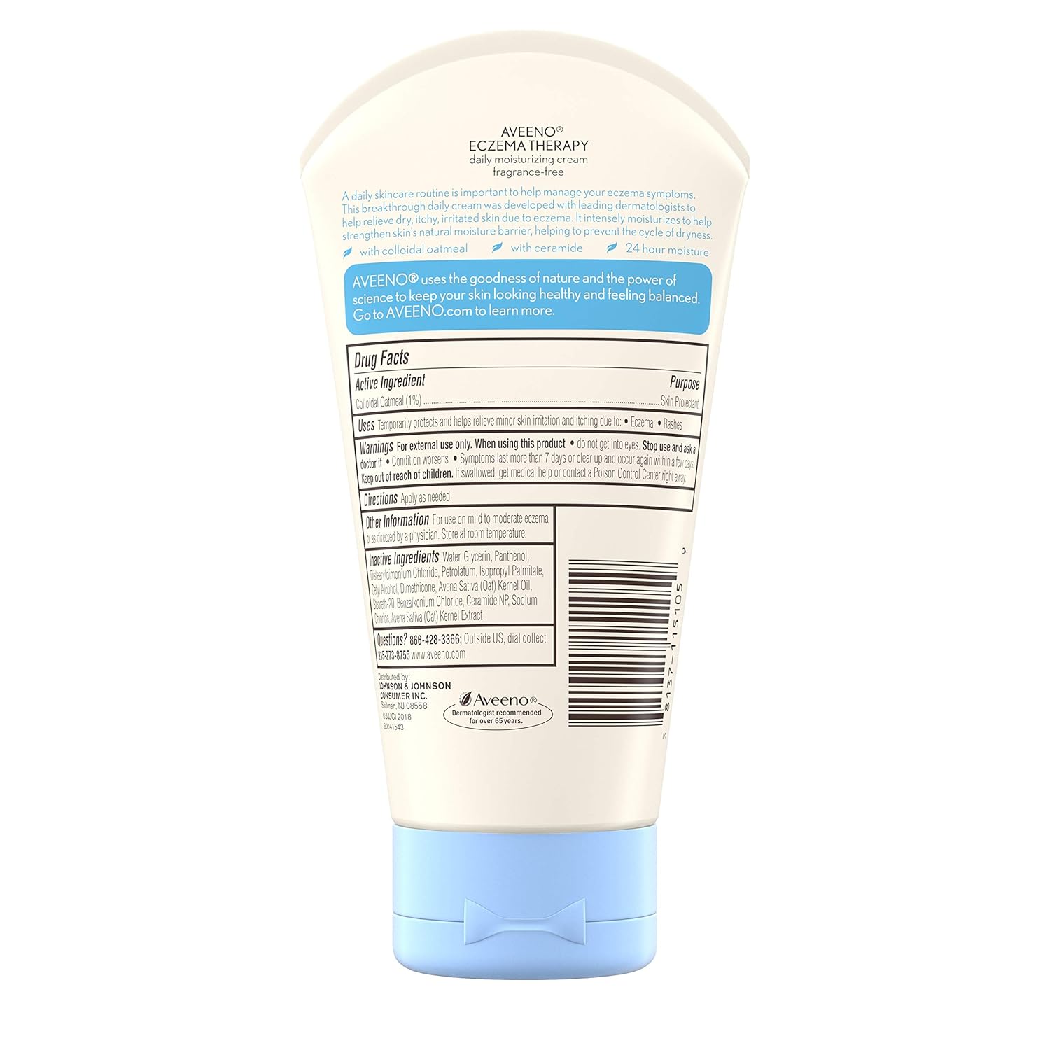 The rich, non-greasy formula of Aveeno Eczema Therapy Cream provides intense moisture, helping to protect and restore the skin’s natural barrier. Regular use can help keep eczema-prone skin soft, smooth, and protected from dryness.