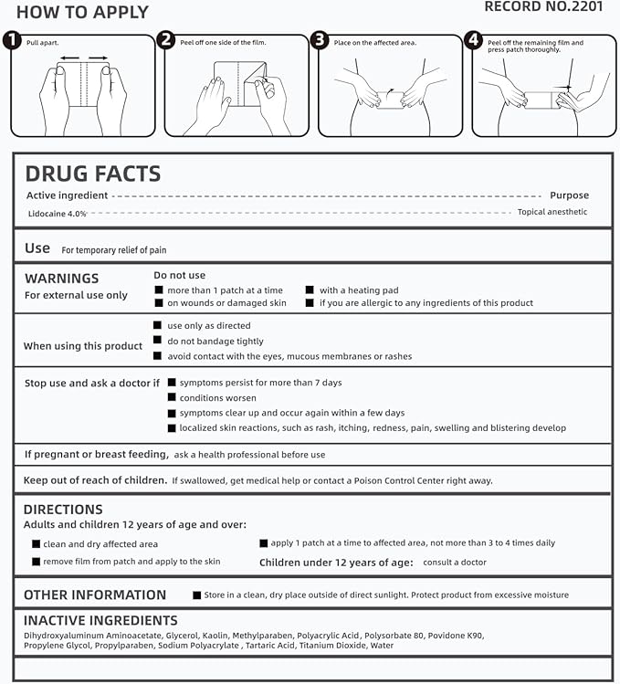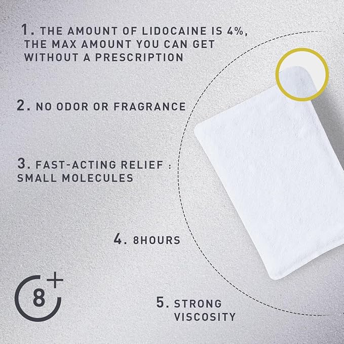 • Long-Lasting Relief: Each patch provides up to 8 hours of continuous pain relief.