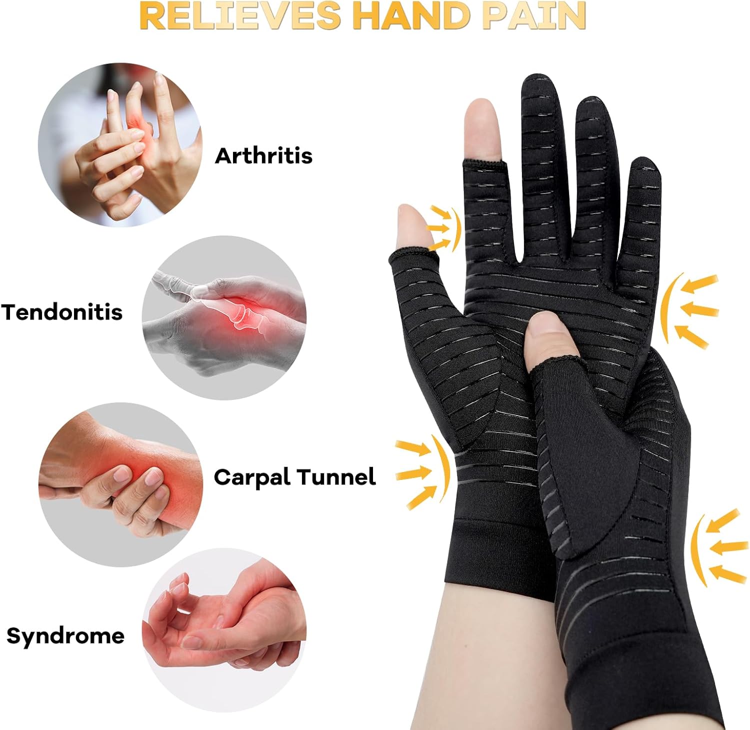 Copper Arthritis Gloves for Hand Pain Relief, Rheumatoid Osteoarthritis, Swelling, Carpal Tunnel, Compression Gloves for Arthritis for Men and Women