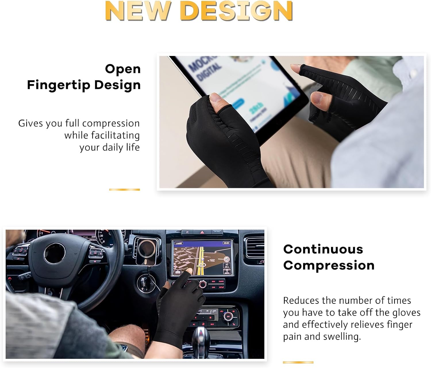 The Copper Arthritis Gloves feature an open finger design that allows you to maintain full range of motion while wearing them. This design enables you to perform everyday tasks such as using your phone, typing, cooking, or driving without restriction. The gloves provide support and pain relief while keeping your hands functional and flexible.