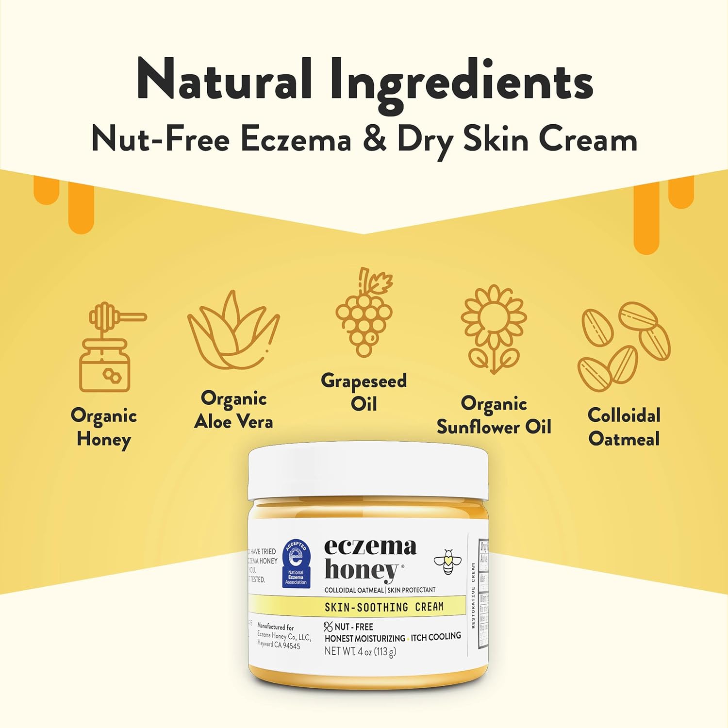 ECZEMA HONEY Nut-Free Original Skin-Soothing Cream – Honey Lotion For Dry & Sensitive Skin – Natural Eczema Cream for Adults & Kids – Itchy Relief Cream for Eczema, Psoriasis, Dermatitis & More (4 Oz)