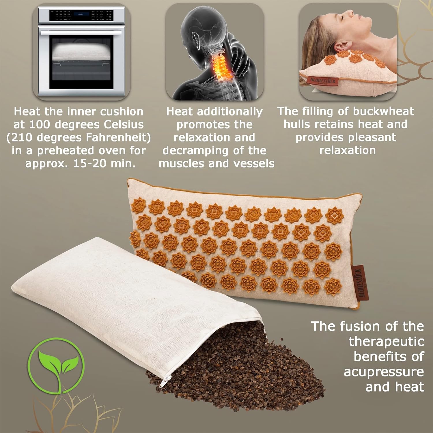 Glanzstück Berlin Acupressure Mat Set Premium – Linen Mat and Pillow with Heat Function for Neck and Back Pain Relief