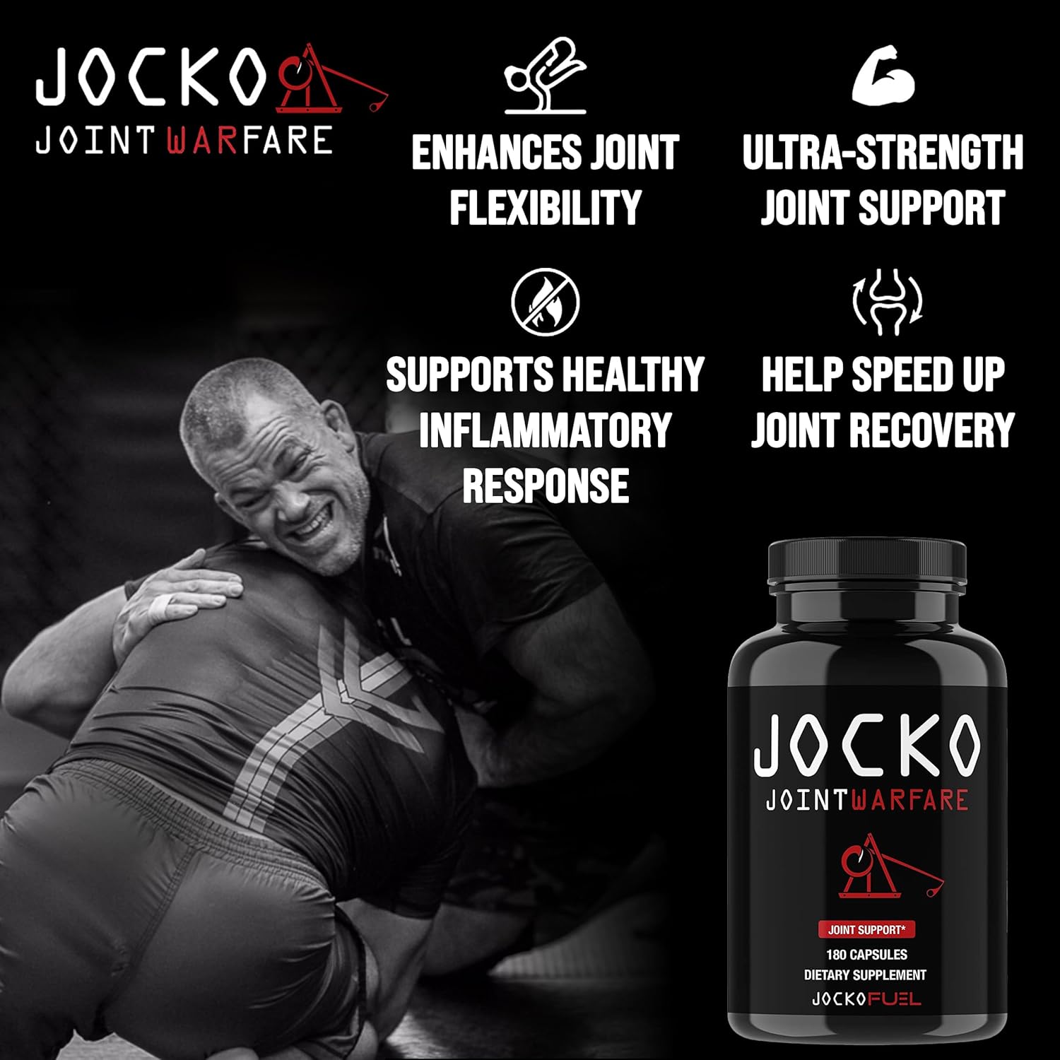 Support your joint health and improve mobility and flexibility with Jocko Fuel Joint Support Supplement, a powerful formula designed to help reduce joint pain and enhance joint function. Each bottle contains 180 capsules packed with joint-supporting ingredients like Glucosamine, MSM, Turmeric, and Boswellia, making it the perfect supplement for active individuals, athletes, or anyone looking to maintain healthy joints and stay active.