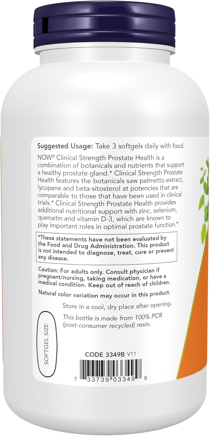 Support your prostate health with NOW Supplements’ Clinical Strength Prostate Health formula. With saw palmetto, beta-sitosterol, and lycopene, this advanced blend promotes better urinary function, reduced frequency, and long-term wellness.