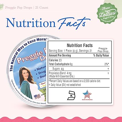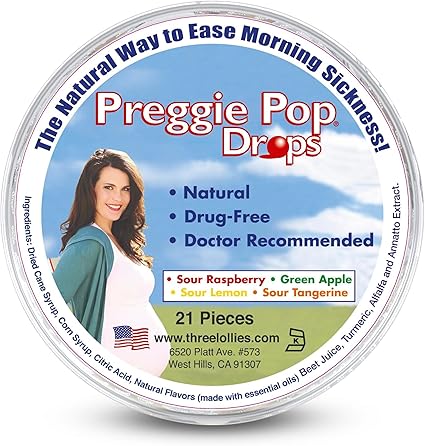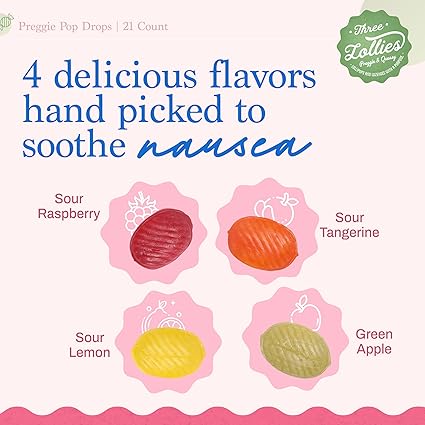 Preggie Pop Drops – 21 Drops – Morning Sickness Relief during pregnancy – Safe for pregnant Mom & Baby – Gluten Free – Four Flavors: Lemon, Raspberry, Green Apple, Tangerine