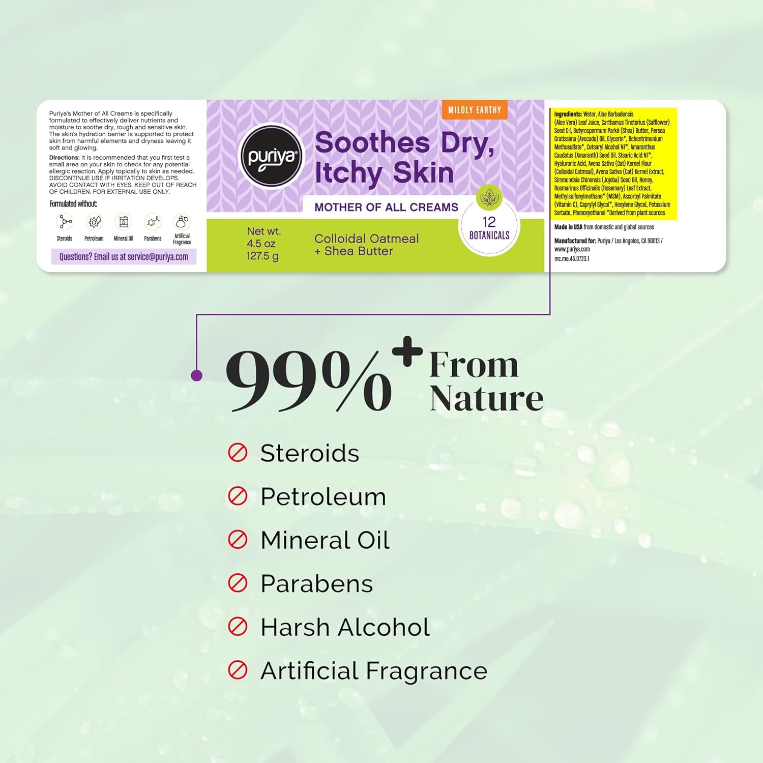 Puriya National Eczema Association Accepted Cream 4.5 oz, Dry Itchy Skin Relief, Colloidal Oatmeal Lotion, For Kids, Adults, Face, Hands, Mother of All Creams, Plant-Based Hydration,No Fragrance Added