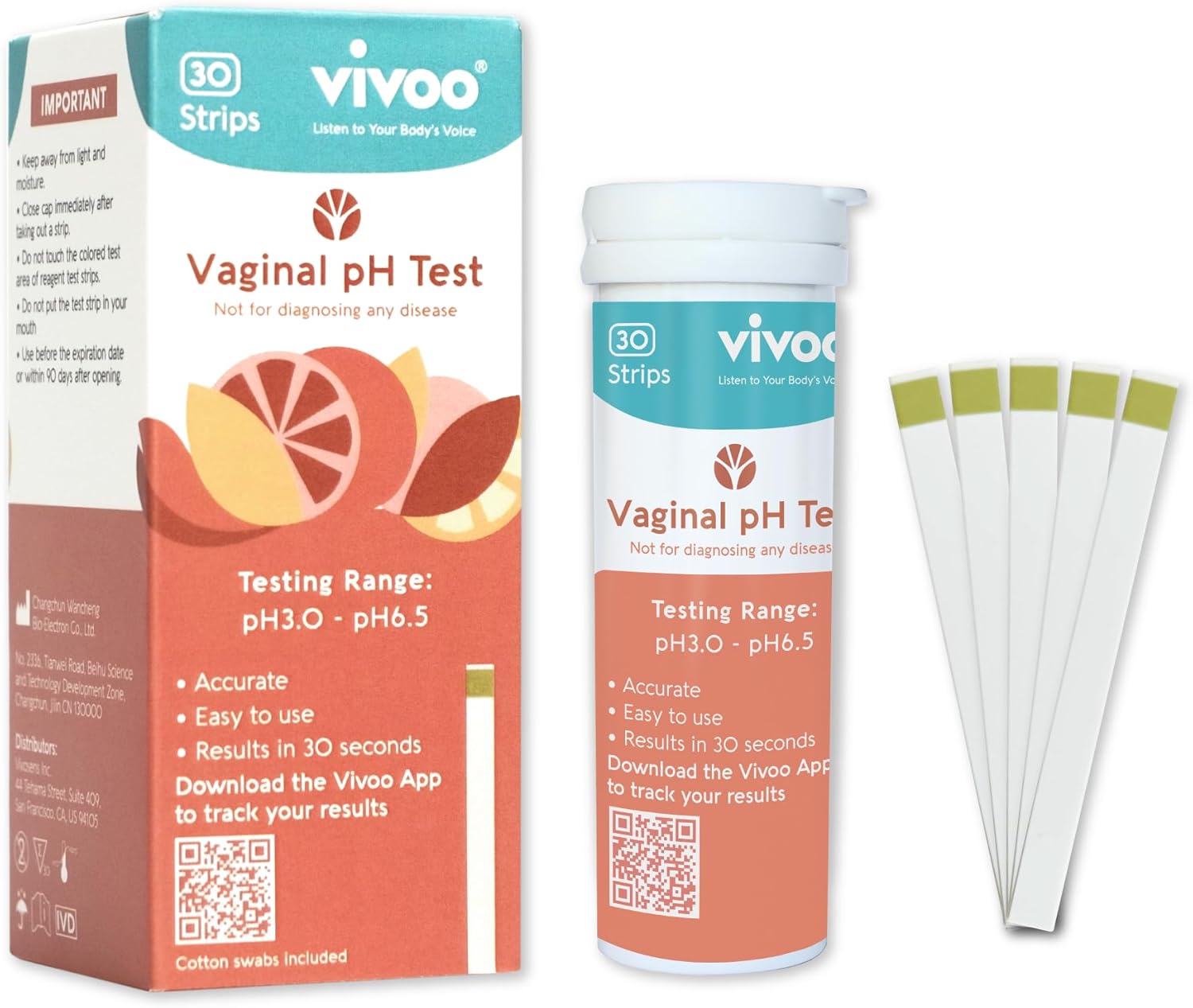 The VIVOO Vaginal pH Test Strips provide an easy and effective way to monitor your vaginal pH in just 30 seconds. Designed for proactive feminine hygiene, these pH test strips help detect any vaginal imbalances that could lead to infections or discomfort. With 30 strips included, this test kit allows you to stay informed about your vaginal health and take timely action to maintain balance and prevent infections such as bacterial vaginosis (BV) or yeast infections.