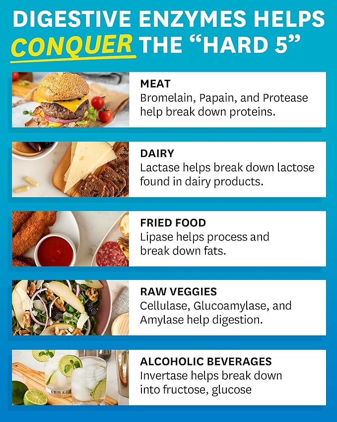 These Digestive Enzymes are formulated with a blend of multi-enzymes, including amylase, protease, and lipase, to help break down carbohydrates, proteins, and fats more efficiently. This helps improve digestion and reduces common digestive issues like bloating, gas, and discomfort.